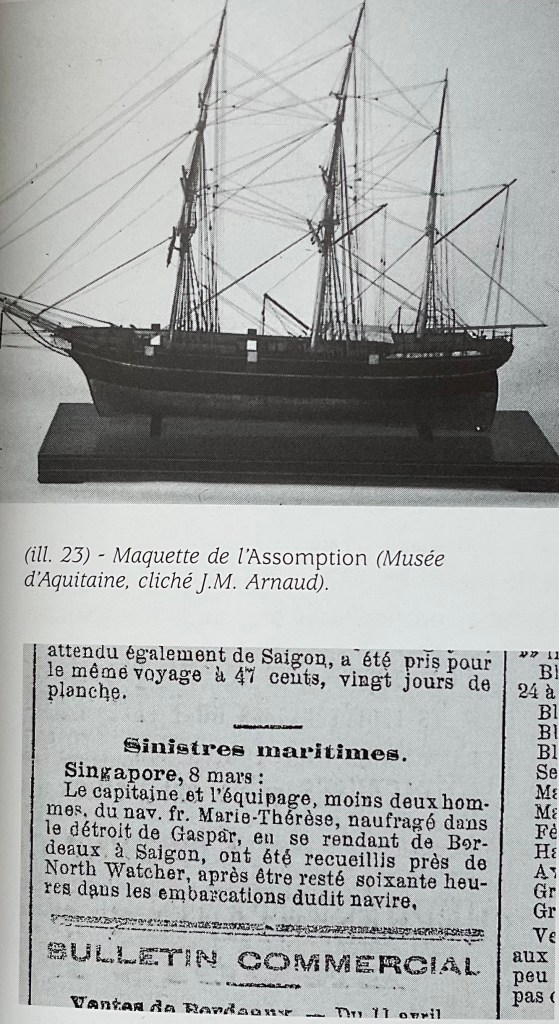la maquette d’un sister ship et l’information du sinistre par voix de presse à Bordeaux